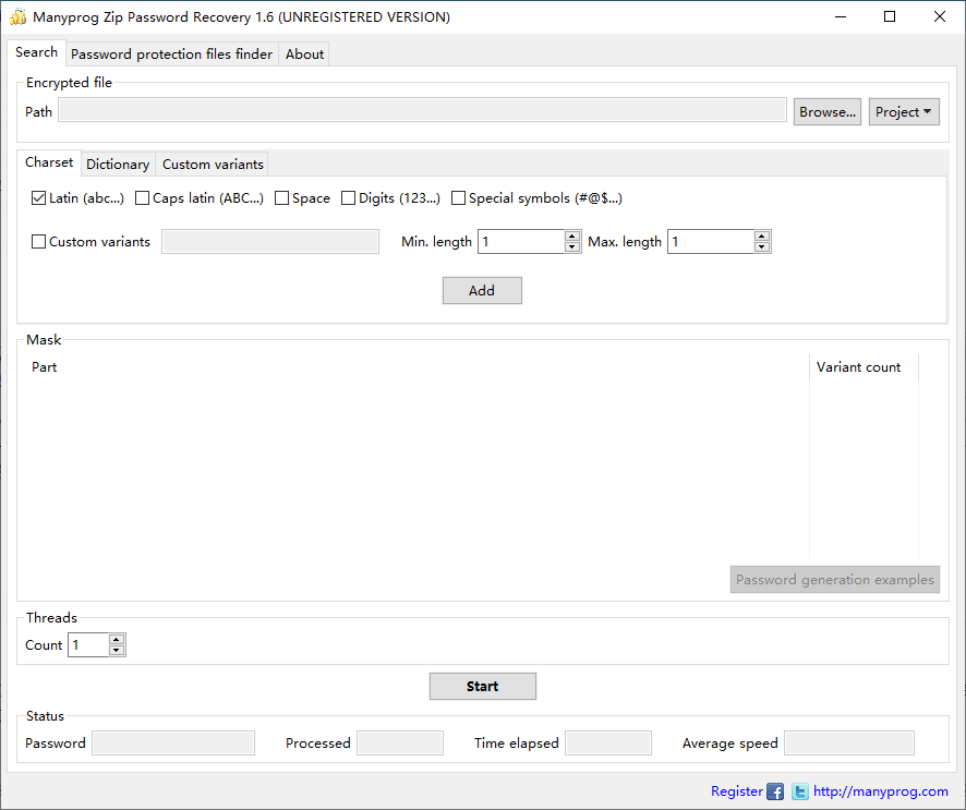 Manyprog Zip密码恢复是在这种情况下提供帮助的必不可少的工具。您只需要运行此实用程序,指定文件的路径,然后输入一些搜索条件和密码即可减少程序时间。选择zip文件密码的标准越精确,选项密码处理抓取密码的次数就越少,因此,您会更快地收到忘记的密码和和谐的zip密码。