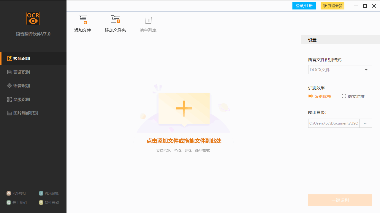 4、您可以点击添加图标,或者直接将需要识别的文件拖放到软件中进行识别。