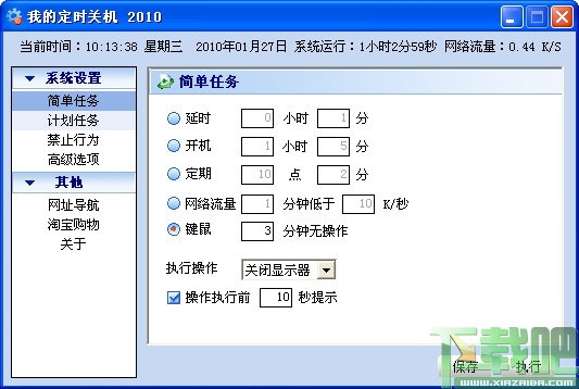 1.执行条件:延时、开机、定期、网速、键鼠。