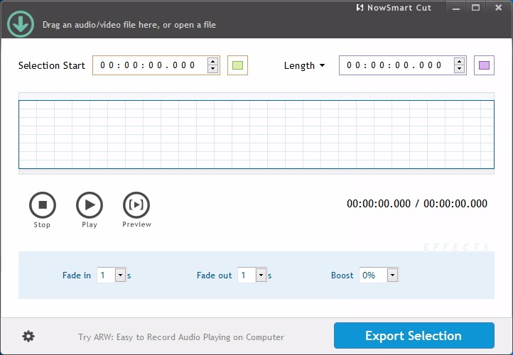 NowSmart Cut官方版可以从MP3,OGG,WAV,m4a文件制作铃声,也可以从AVI,WMV,MKV,MP4,RM,rmvb文件中提取音频片段。