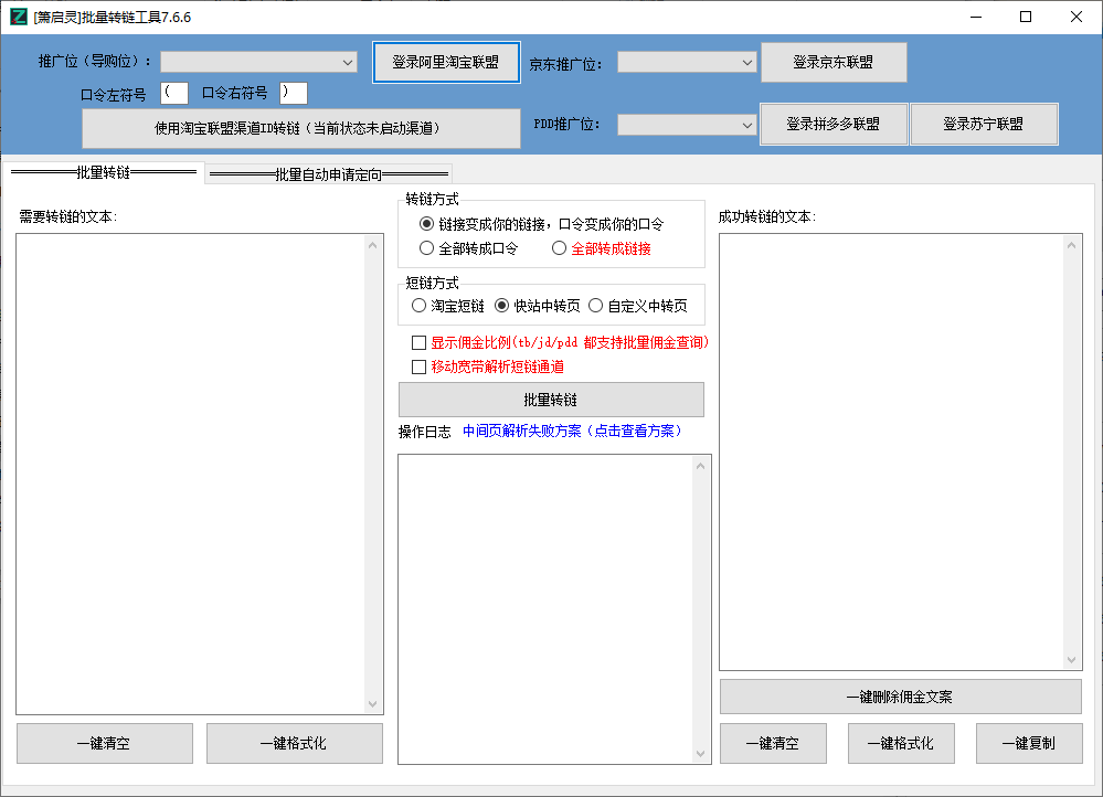 萧启灵批量转链工具是一款高效的淘客辅助工具,它可以帮助淘客高效的进行商品转链,节省淘客的转链时间;这款工具的使用方式比较简单,但是功能十分强大,它支持淘宝联盟,京东联盟,拼多多以及苏宁等主流的电商联盟平台,通过这款工具的辅助,淘客仅需要几分钟的时间就可以快速提取高佣商品链接;萧启灵批量转链工具除了可以提取商品以外,还可以将商品宝贝的长链接批量的转换成短链接,转换之后的商品链接将更加容易被分享和保存;感兴趣的朋友可以下载体验。