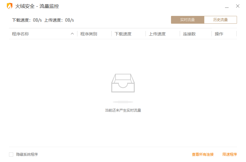 火绒流量监控是从火绒安全软件中分离出来的一个流量监控小程序,该工具可独立运行,无需下载火绒安全和安装,直接下载后在计算机中打开就可以使用;这款工具能够监控我们计算机中的流量使用情况,并且支持用户限制程序的上网速度,帮助用户查找网速降低或者其它网速异常的问题;火绒流量监控工具的界面简洁,不附带任何插件也没有广告,它可以在后台隐藏运行,平时不会打扰用户正常工作;软件可以记录下近一个月的流量使用情况,并且支持用户选择某时间段查看流量使用情况。