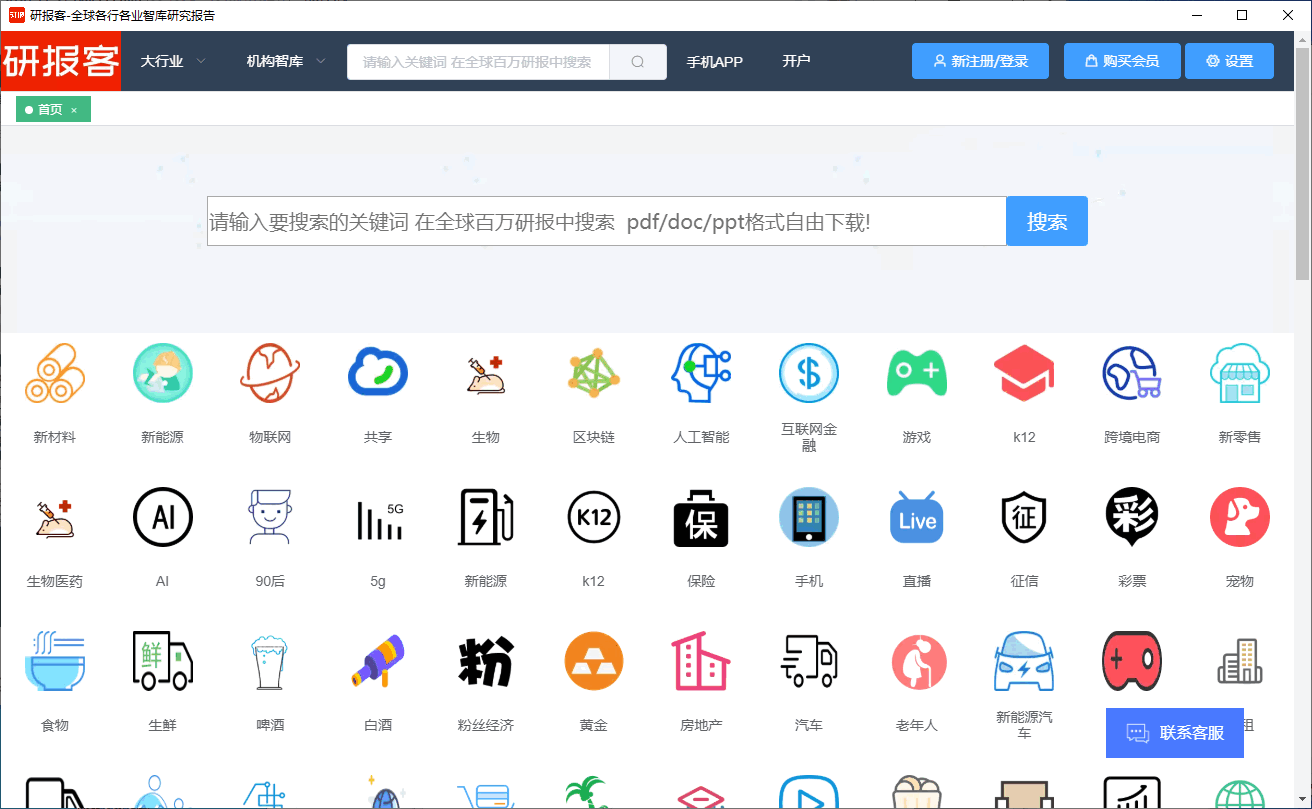 研报客是一款行业研报查询软件,该软件整合了全球智库发布的行业研报,通过这款工具能够让用户快速的找到与自身行业相关的研报;软件中所有的研报均来自国内外知名的调研机构,行业权威机构和智库等,因此软件为用户提供研报拥有绝对的真实的性和权威性;该研报软件拥有包括金融,服务业,互联网等行业的研报数据,并且提供多个版本的研报供用户下载;研报客的出现为不少企业负责人节省了查找研报的时间,让他们可以根据研报的数据制定公司未来的发展规划以及企业的投资计划等;不仅如此,个人用户也可以在投资股票,金融等领域中使用它。
