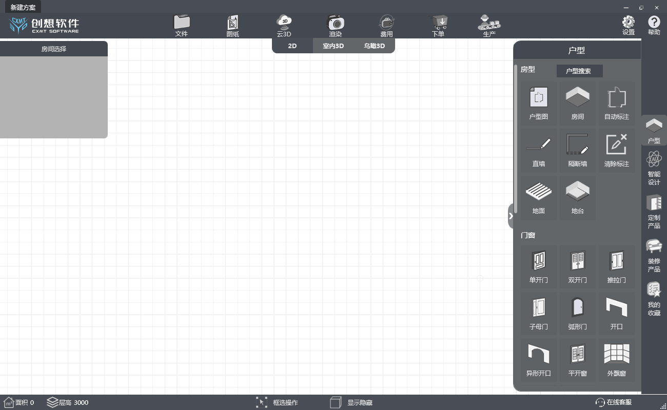 3、高效实用,全新二维绘制程序,效果图模式和下单模式随时切换,整体户型全屋设计只需6-7小时。
