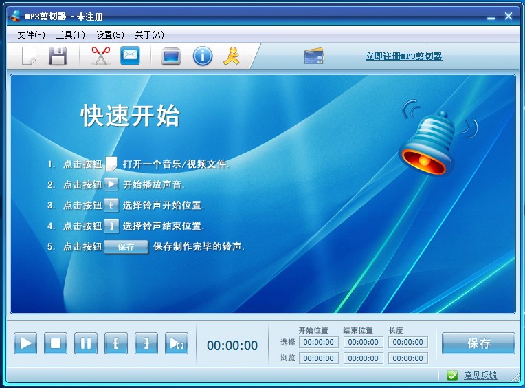 MP3剪切器是一款界面简洁,操作方便的MP3剪切工具。有了MP3剪切器,您可以方便的将MP3和各种流行的视频或音频格式剪切成MP3片段,和手机铃声。MP3剪切器支持MP3, WMA, AMR, WAV, AVI, WMV, MOV, 3GP, MP4, FLV, RM, RMVB, VOB, DAT, MPEG, WAV, WMA, ASF, RA以及大部分流行格式。拥有这款MP3剪切器,您相当拥有了MP3剪切器,WMA剪切器,WAV剪切器,AMR剪切器……一款万能的MP3剪切器!只需要将你的其他格式文件用MP3剪切器打开,选择好你想剪切的MP3起始位置和结束位置,点击保存,立刻搞定!
