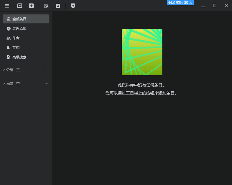 8、在此资料库中查看条目,您可以通过工具栏上的按钮来添加条目。
