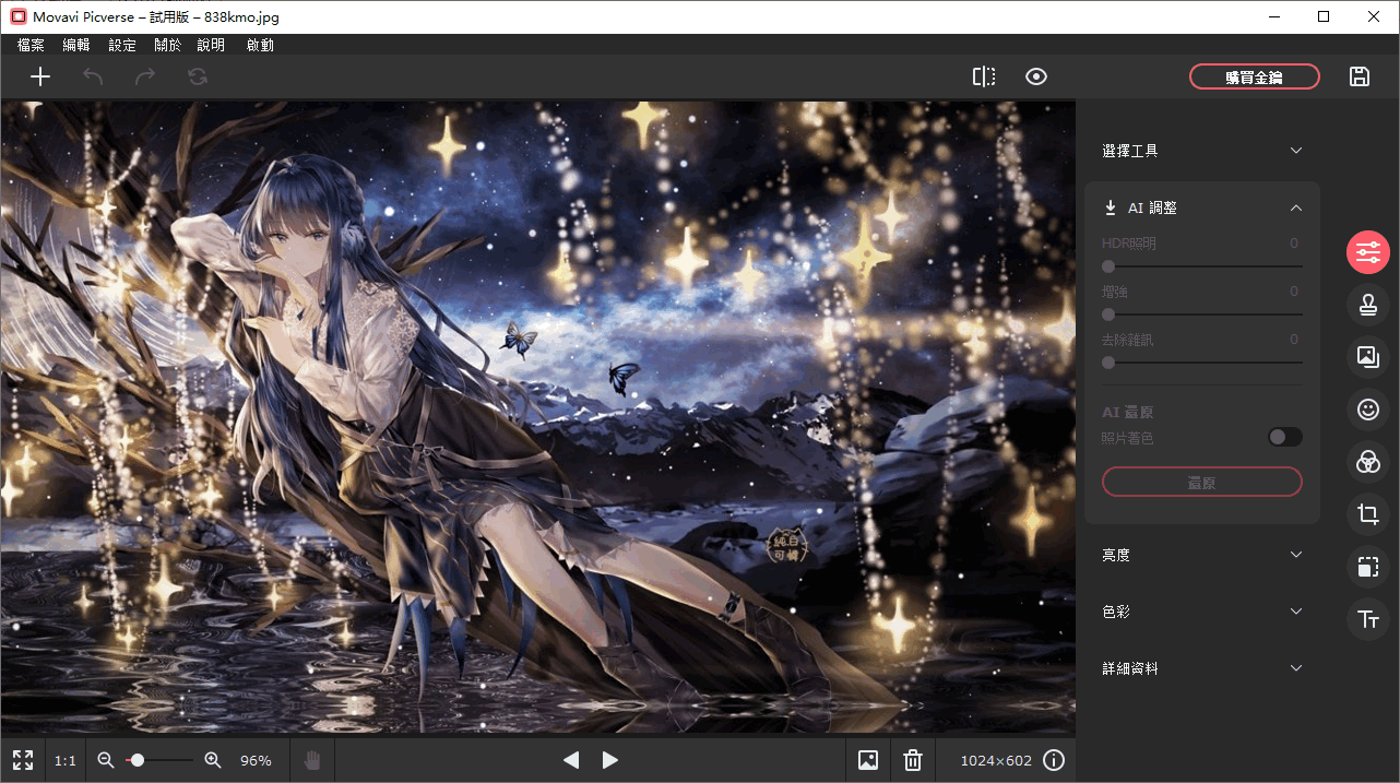 Movavi Picverse是一款智能图像处理工具,它提供常规的图像编辑功能,色度调节功能以及智能图像处理和美颜功能;丰富的工具支持,无论您是处理一般的图像还是人物图像都将非常简单;并非只有PS大神才可以将图像变得很精美,选对了工具,任何人都有可能制作出让人惊讶的图像;Movavi Picverse不仅拥有简洁的用户界面,它还巧妙的将图像处理功能嵌入到右侧的边栏中,使得用户不必面对繁琐的处理窗口;这款工具最有特点的是,它采用了智能图像处理技术,能够在几秒钟内自动优化图像。