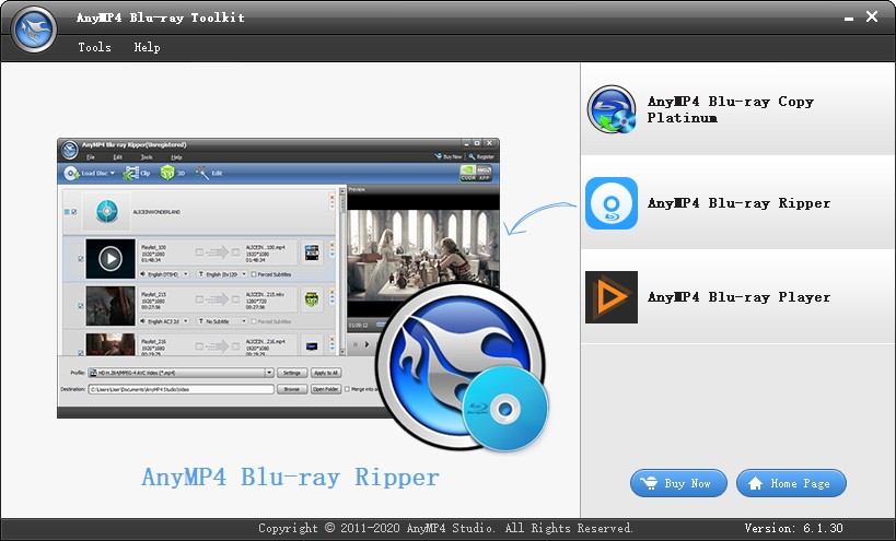 AnyMP4 Blu-ray Toolkit是一款目前非常流行的蓝光视频工具,内置有 AnyMP4 Blu-ray Copy Platinum、AnyMP4 Blu-ray Ripper和AnyMP4 Blu-ray Player三大功能,可以对视频进行播放、提取、复制等操作,是一款非常强大专业的蓝光视频编辑处理工具;通过AnyMP4 Blu-ray Toolkit这款软件用户无需下载蓝光播放器、蓝光开膛手、蓝光复制等软件即可使用其所有功能,可以帮助用户轻松地进行高清蓝光视频播放、蓝光DVD刻录和视频格式转换,是一款不可多得多功能视频编辑处理和视频播放软件,非常值得所有用户下载使用。
