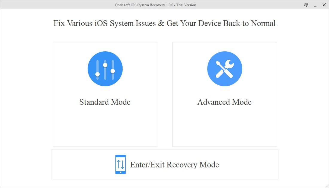 Ondesoft iOS System Recovery是一款功能强大、简单实用的iOS系统修复软件,该软件拥有强大专业的iOS系统修复功能,可以帮助用户进行快速高效的手机修复,可以帮助用户解决各种手机问题,同时这款软件拥有标准修复和高级修复两大模式,可以帮助用户针对各种情况进行手机iOS系统修复;使用Ondesoft iOS System Recovery这款iOS修复软件的标准模式可对手机黑屏、白屏、卡顿、死机或者遭遇各种病毒侵袭损坏等情况进行修复,如果标准模式无法修复解决的问题,都可使用高级模式进行尝试修复,但值得提醒的是高级修复,修复速度快但会导致数据丢失,用户使用时需谨慎操作。