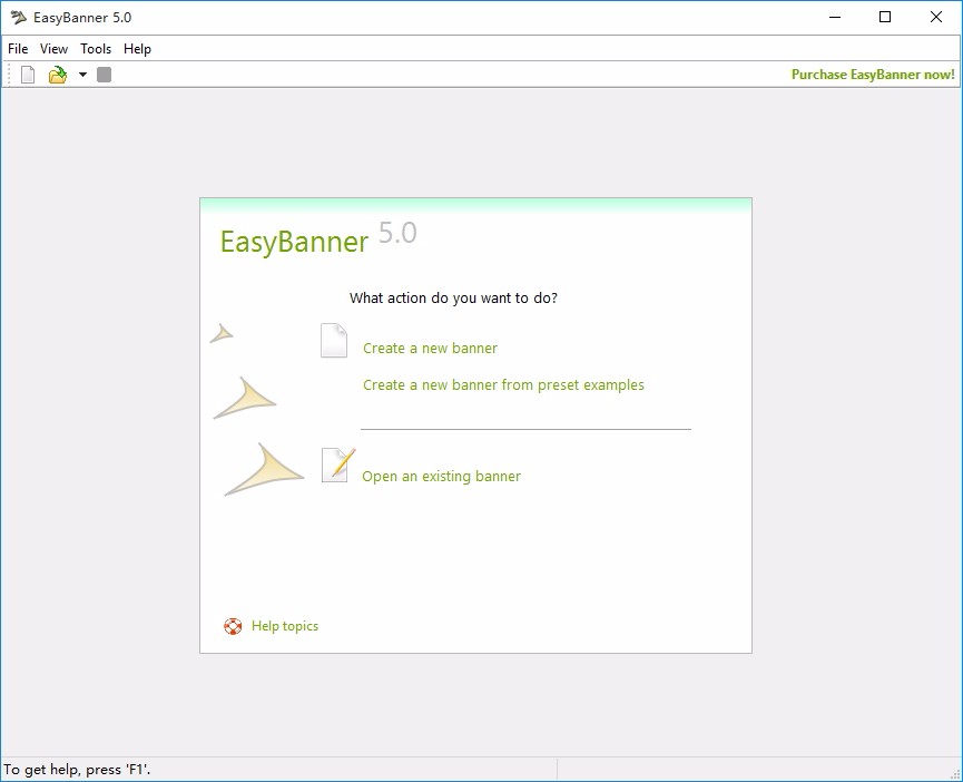 EasyBanner是一款非常专业且优秀的banner制作工具,顾名思义,通过这款软件,可帮助用户快速将banner进行制作,特别适合网页设计开发人员使用,便于快速设计网页导航图,使用该软件,可打造属于自己的导航图,个性化制作,软件界面虽然为全英文界面,但是丝毫不影响简单的操作,可快速创建一个新的banner,也可打开一个已有的banner,使用起来非常方便,可对banner的相关参数进行设置,通过几个简单的步骤即可制作banner,这么好用的软件,赶快下载试试吧!