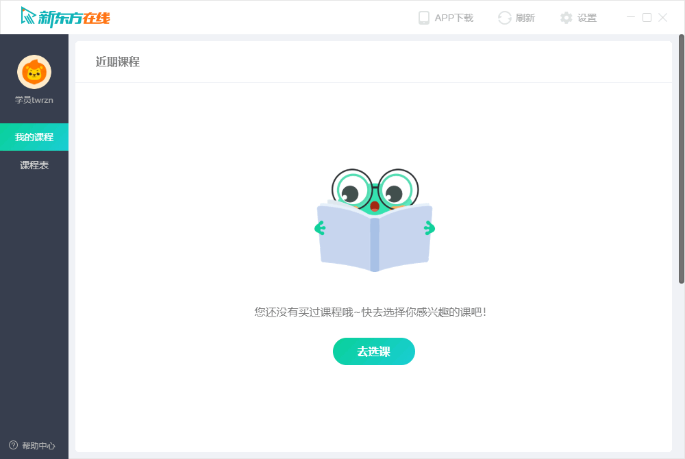 8、如果没有购买课程可以点击“去选课”打开课程选择页面选择课程并购买。