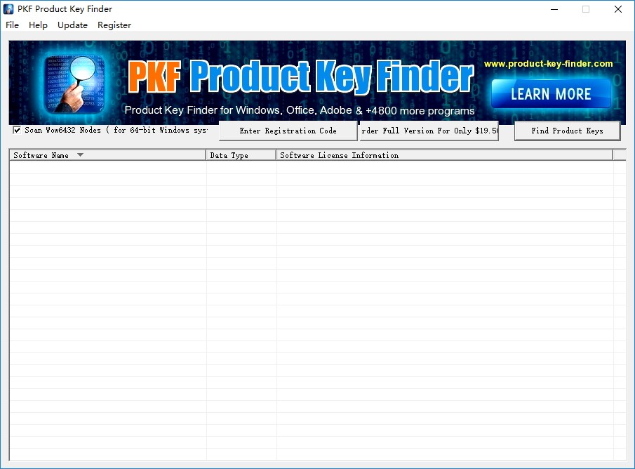 PKF Product Key Finder是一款功能强大且简单专业的产品密钥找回软件,可以帮助用户将各种产品的密钥进行恢复,避免用户忘记密钥而使用不了下载的产品,可以说是一个fico不错的密钥找回的辅助工具,使用这款软件用户不必担心密钥丢失,即使是电脑中有重要数据密码遗失时也可通过该软件进行密钥查找和恢复,非常方便实用;PKF Product Key Finder体积轻量且界面干净简洁,可以帮助用户快速进行密码找回和密码恢复,其功能效率高、速度快,是一款非常优秀的密码恢复软件,有需要的用户可以自行下载。