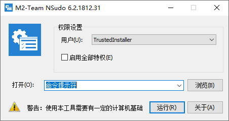 2、可以使用这个工具获取TrustedInstaller令牌并创建进程。