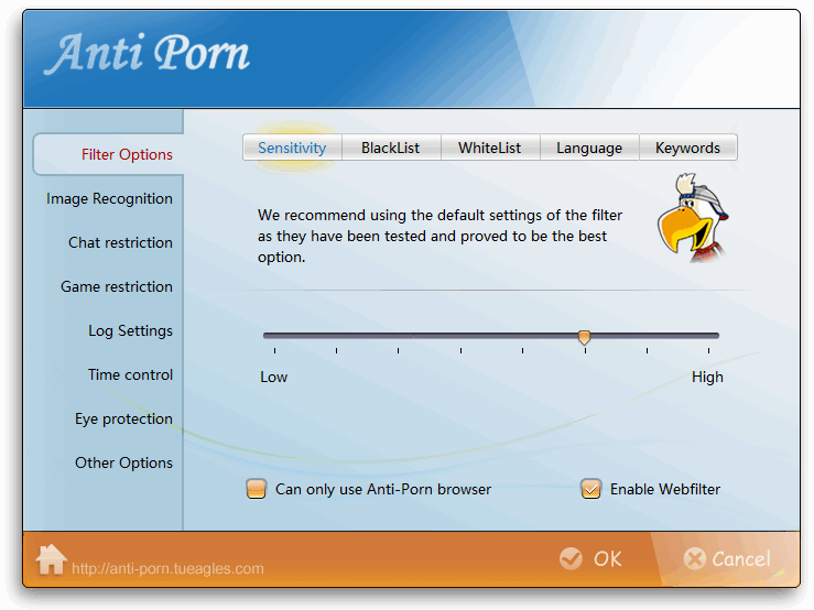 Anti Porn是一款实用的计算机监控软件,主要用于家长监控孩子的计算机,防止孩子在无疑中打开敏感网站或者是沉迷游戏;现在很多家庭都拥有计算机,因此不少孩子会很小就接触到计算机,虽然计算机可以为我们的生活和工作带来便利,但同时也存在很多不好的地方;而对于孩子来说,他们无法分辨网络中哪些信息是有用的和哪些信息是对自己造成伤害的;Anti Porn可以为孩子提供一个全面的网络防护功能,限制孩子使用计算机的时间,使用计算机软件,以及智能过滤不好的网站,保护孩子的上网安全。
