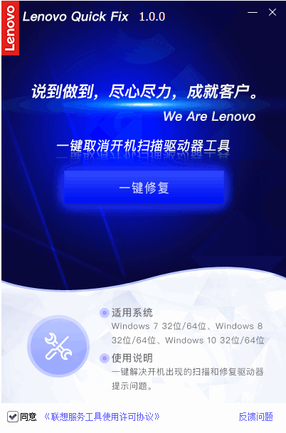 一键取消扫描修复驱动器工具是用于取消系统在开机时进行驱动器扫描的工具,当用户在强制关机或者异常关机情况下重新开机时,计算机会出现“扫描和修复驱动器”的提示,如果用户觉得这种提示非常烦人的话,那用户就可以通过这款工具将其取消;取消之后系统将不会出现这类提示,让用户能够直接进入系统并使用计算机;一键取消扫描修复驱动器工具是经联想平台检测的绿色工具,安全绿色,用户可以放心使用,由于这款工具的功能比较单一,因此该工具也是十分的好用。