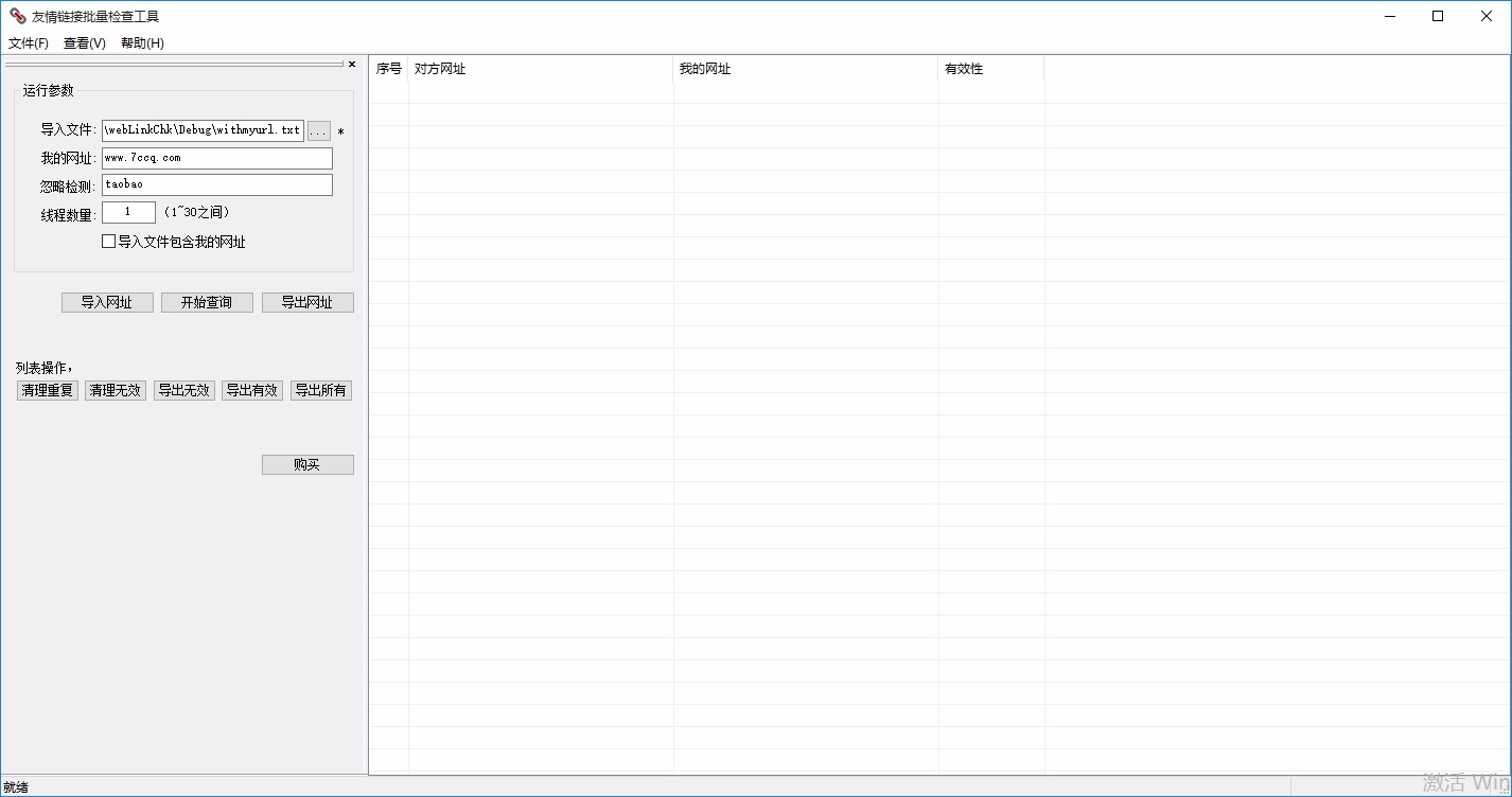 友情链接批量检查工具是一款非常简单且实用的友情链接批量检查软件,可帮助用户快速将友情链接进行检查,还可批量进行检查,对于站长来说非常有帮助,有的时候需要与合作方进行合作,若您需要查询合作方给的网页是否有效,就可以用到这款软件,可查询多个不同的网页,不仅提高了工作效率,还节省了您的时间,使用起来非常方便,您可将多个网址保存至TXT文本中,直接导入TXT文件,即可将所有网址进行添加,进行简单设置后,一键即可进行查询,快速且准确的显示出每个网址对应的有效性,这么好用的软件,赶快下载试试吧!
