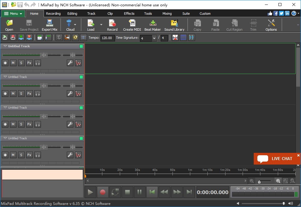 在MixPad中录制剪辑很容易。只需在要录制到的任何轨道的轨道控件中启用“录制”按钮即可。一旦曲目进入录音待机模式,只需按主录音按钮,MixPad将开始录音。通过将多个音轨置于录音待机模式,您可以轻松地录制到多个音轨。MixPad具有许多强大的录制功能,包括能够同时将多个不同的源录制到不同的音轨中的功能。