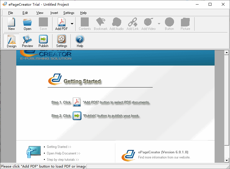 步骤2.单击“使用ePageCreator创建数字出版物”菜单项,FlipCreator将自动启动,并且所选的PDF文件将转换为数字出版物。