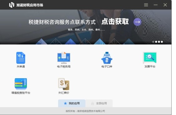 软件登陆成功后,可进入旭诺财税应用市场主界面,如图所示: