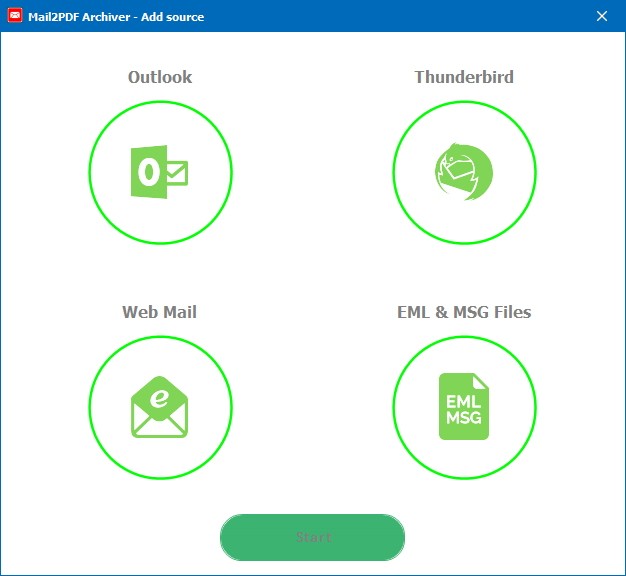 Mail2PDF Archiver界面干净简洁、操作简单方便易使用