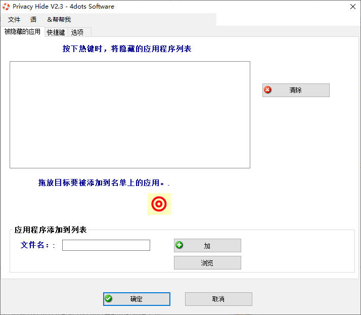 1、只需将目标图像拖放到应用程序的窗口中,它将被添加到将通过热键隐藏的应用程序列表中。