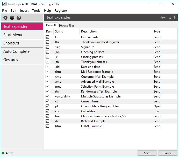 词组文件-运行包含几个简单文本扩展器词组的文件。