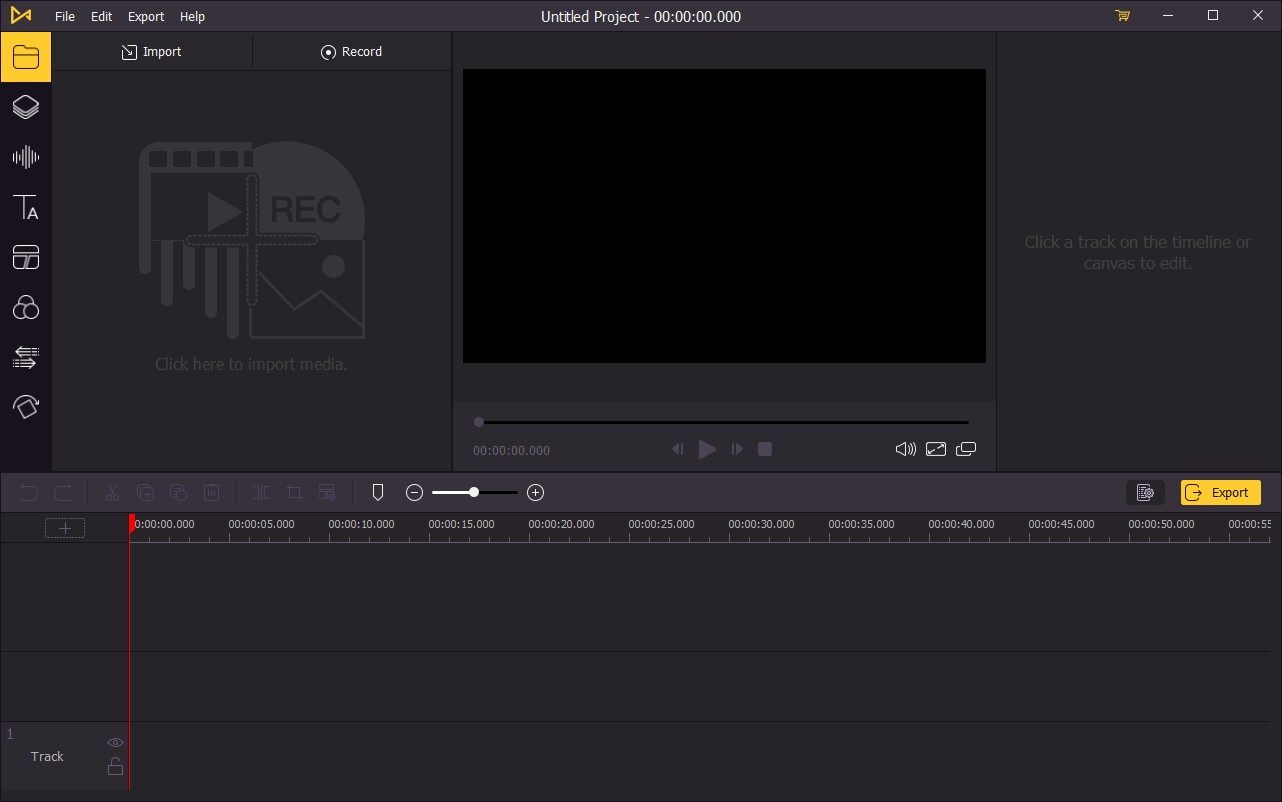 安装完成后,请在桌面上打开TunesKit AceMovi。您将在顶部菜单栏上看到两个选项-“导入”和“记录”。如果您已经有视频,图像或音频文件,则只需单击“导入”按钮或大的“ +”图标,即可将要编辑的媒体文件添加到TunesKit。如果您没有现有视频,并且想制作视频教程等,则可以单击“录制”按钮以启动内置屏幕录制应用程序。然后,您可以先捕获屏幕,视频将自动添加到媒体库中。查看更多详细信息:如何使用TunesKit录制屏幕>>注意:此步骤用于创建新项目。如果要继续编辑旧项目,只需双击项目文件,或转到“文件”>“打开项目”或“最近打开”即可在TunesKit中打开它。第2步编辑视频,图像,效果,文本,音频等。