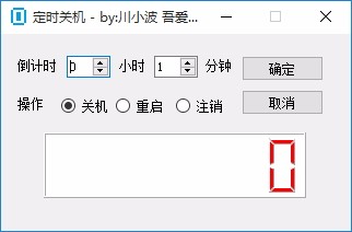 LCD定时关机是一款非常简单且实用的电脑定时关机软件,顾名思义,通过这款软件,可帮助用户快速将电脑定时进行关机,采用api和shutdown命令进行关机,避免弹出dos窗口,软件体积小巧,所占内存也很小,但是功能却很实用,软件操作也非常简单,只需设置倒计时时间,选择需要执行的操作,一键即可执行任务,如定时关机、重启等,使用起来非常方便,有了这款软件,就不用担心忘记关电脑了,在设置的指定时间自动将电脑进行关机,总之这是一款非常好用的软件,如果您有需要,那就赶快下载体验一下吧!