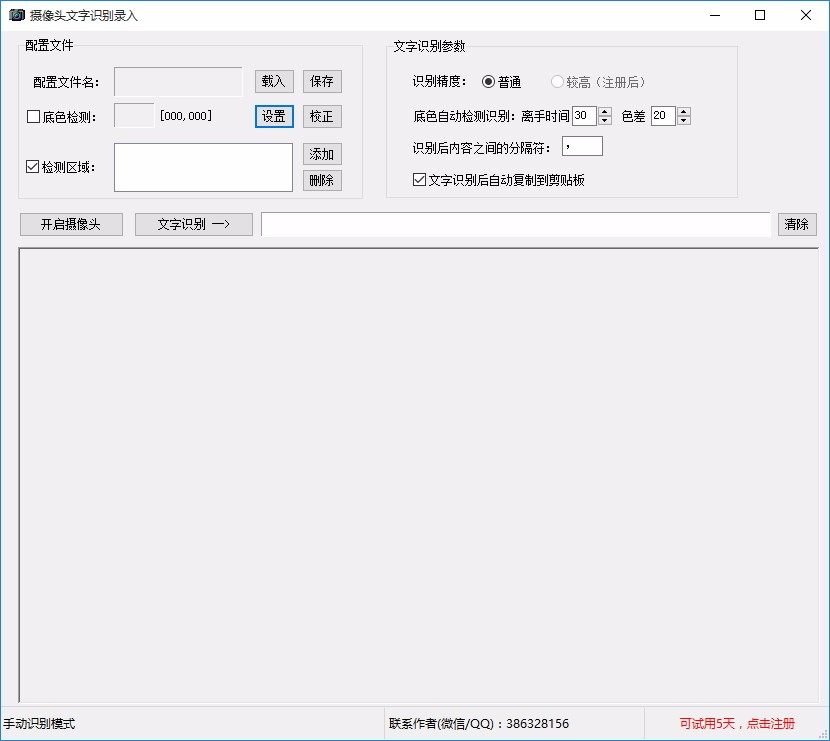 3、能够设定和检测摄像头图像的底色变化情况,实现放入资料后自动连续识别。