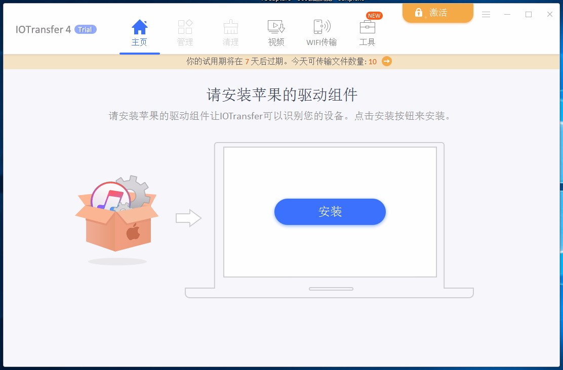 2、点击安装,可安装苹果的驱动组件让IOTransfer可以识别您的设备