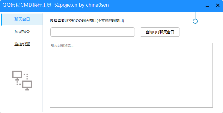 QQ远程cmd执行工具是利用qq聊天远程控制电脑自动执行cmd命令的工具,用户只需要通过聊天窗口发送指定的命令就可以远程控制电脑自动运行指令,比如您可以通过QQ实现远程关机打开指定的文件或者是指定的程序等等;QQ远程cmd执行工具拥有简洁直观的用户界面,使用这款工具并不需要用户拥有丰富的编程知识,您只需要通过简单的设置,就可以远程命令电脑进行工作;如果您希望使用手机QQ或者电脑版QQ控制另一台计算机进行指定的动作,那么千万不要错过这款工具,这款工具绿色安全,需要的用户欢迎下载使用。