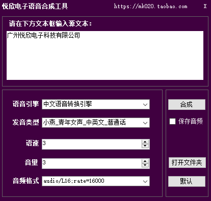 悦欣电子语音合成工具是一款轻量级的语音合成工具,用户只需要提供文字内容,然后选择音效就可以将文字内容转换成语音内容,非常简单好用;这款工具采用三种语音合成引擎,支持合成英文语音,普通话语音以及各地方言的语音等;悦欣电子语音合成工具可以用来制作街头的语音叫卖广告或者其它一些需要重复播放的提示语音等;同时软件中还预置了不同的语音效果,您可以选择男声,女声或者其它类型的音效来进行转换;这款工具绿色安全,免费提提供转换服务,需要的用户欢迎下载。