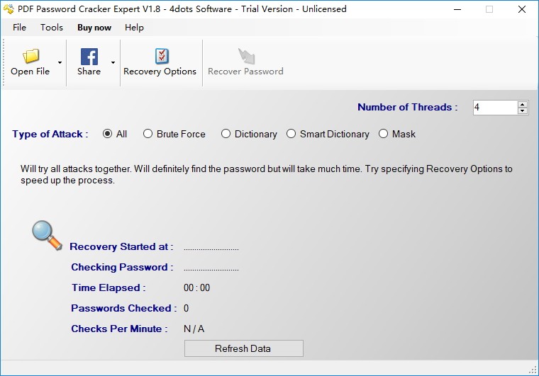 您随时可以暂停或停止PDF密码恢复过程,然后将其关闭并在另一天恢复。