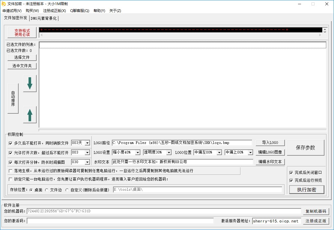 五秒是一款简单专业的图纸文档加密系统,可以帮助用户对CAD图纸进行文档加密,使用这款软件用户只需将文档添加到软件上即可进行文件密码加密操作,整个操作流程非常简单便捷,该软件可以将dwg、pdf、xls、docx、bmp、jpg、jpeg等多种图片格式添加到软件上进行加密设置,用户可以通过该软件给图片文件进行加密,从而增加图片的安全性;五秒这款功能强大、简单易用的文档加密软件,可以通过文件加密来避免用户的图片被复制粘贴,从一定程度上可以保护图片文件的版权,可以有效设置文档图片的保存、打印、去水印等多种权限。