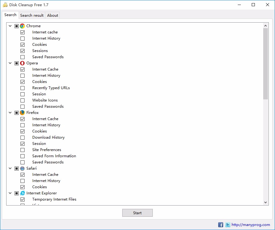 包括从垃圾文件中清理电脑?首先,从临时文件中清除安装在计算机上的web浏览器。这个快速安全的实用程序-计算机清理程序-只需几分钟就可以清理浏览器缓存、internet搜索、浏览历史记录、internet帐户、Mozilla Firefox、Google Chrome、Opera、Safari、internet Explorer等浏览器中的cookie。尽管互联网上的临时文件单独有一个小卷,但删除后释放出来的空间并不是那么小。原因是这些文件额外的时间积累了相当大的数量。