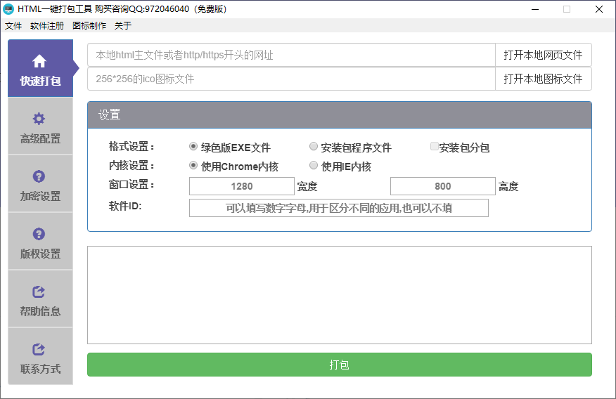 HTML一键打包EXE工具同时支持IE内核和Chrome内核,并可以生成绿色版EXE或者安装包文件,适用于不同的打包场景。
