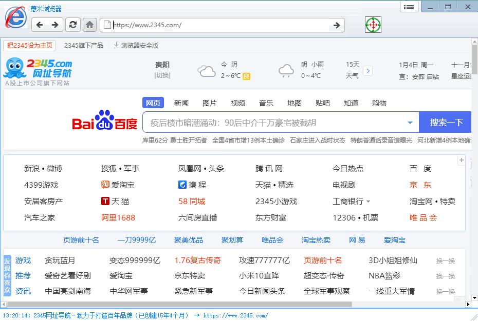 2、程序启动之后默认是2345主页,您可以在导航主页的搜索框中输入您需要查询的内容并单击回车键。