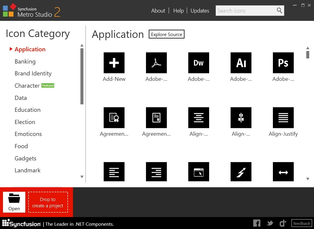 Syncfusion Metro Studio是7,000多个平面和线框图标模板的集合,可以轻松自定义以创建数千个独特的图标。它还支持从选定的图标集创建自定义图标字体包。