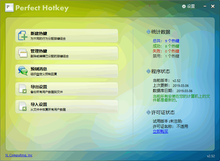 Perfect Hotkey翻译过来就是完美热键,从名字就不难看出这款软件是与热键相关的软件,确实也是如此,用户可以通过它自定义创建各种操作的热键;在日常工作中,我们会使用一些组合按键来完成复制,粘贴,保存等操作,这些都是Windows系统中自带的热键功能,因此只能完成一些比较基础的工作;而Perfect Hotkey可以让您扩展键盘热键的功能,比如您可以根据自己的使用习惯来设置当按住哪个组合键时即可快速打开指定文件,程序以及关机等等,通过这种方式进一步提升我们的办公效率。