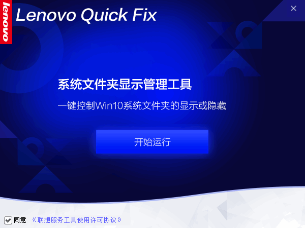 系统文件夹显示管理工具是联想推出的一款用于显示win10系统文件夹的小工具,这款工具简单好用,无需复杂的设置,可以很轻松的将音乐,视频,图片等系统文件夹显示在桌面;系统文件夹与普通的文件夹不一样,一般系统文件夹是无法被删除的,您可以删除里面的数据,但是不能将文件夹一起删除;系统文件夹一般有七个,分别是视频,下载,图片,音乐,文档,桌面,3D对象等;使用这款工具用户可以将需要经常使用的文件夹显示在桌面,让用户在使用这些文件夹的时候能够快速打开。