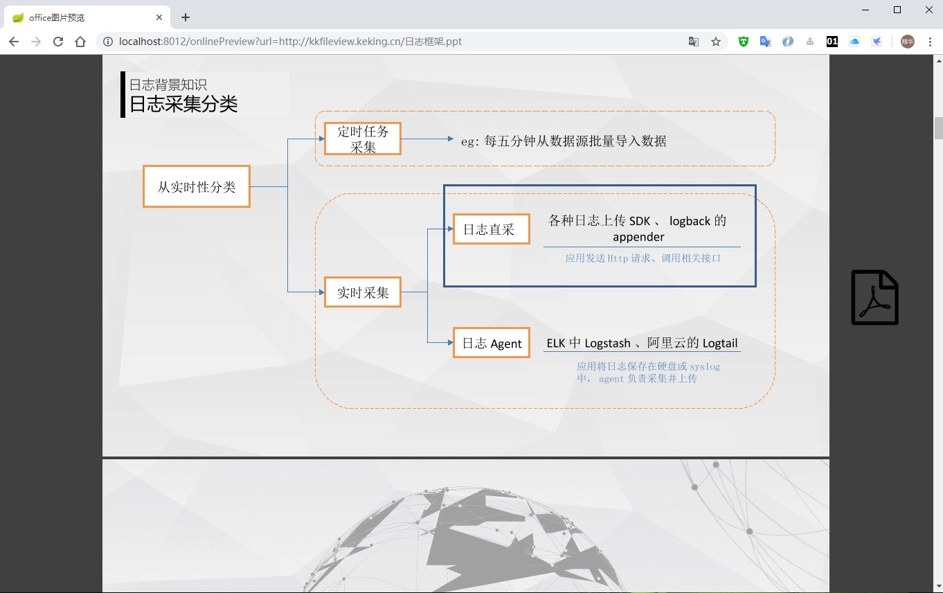 支持pdf文档预览,和word文档一样,有两种预览模式