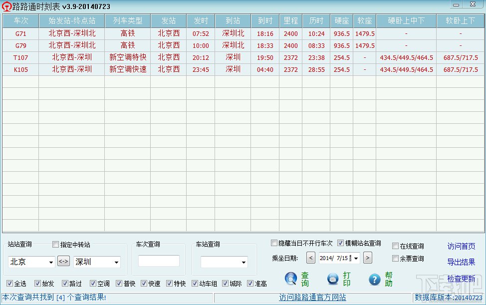 路路通时刻表(PC版)是一款针对电脑平台开发的火车时刻表查询软件,具有数据最准确、软件最小、功能最全、完全免费、更新最及时、操作最简单等特色!是查询时刻的必备软件!