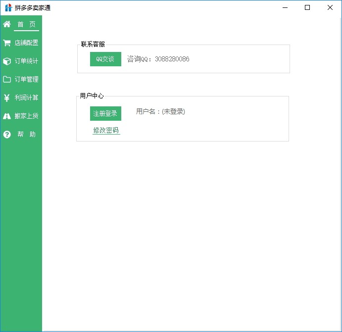 拼多多卖家通一款功能丰富、专业实用的拼多多商家必备辅助工具,内置有店铺配置、订单统计、订单管理、利润计算、搬家上货等功能操作模块,主要用于拼多多各种数据查询、分析和前台后台管理,可以帮助用户有效提高店铺推广效率、增加商品销量;拼多多卖家通支持商品数据实时查看、商品一键搬家上架,商品成本和利润计算等多种功能,是一款功能非常强大、简单易用的拼多多店铺商品推广和管理软件,使用这款软件用户可以快速便捷的统计各种商品订单,分析商品关键词搜索规则以及访客流量趋势,可以帮助用户有针对性的进行转化率走向优化,提高商品销量和店铺收益。