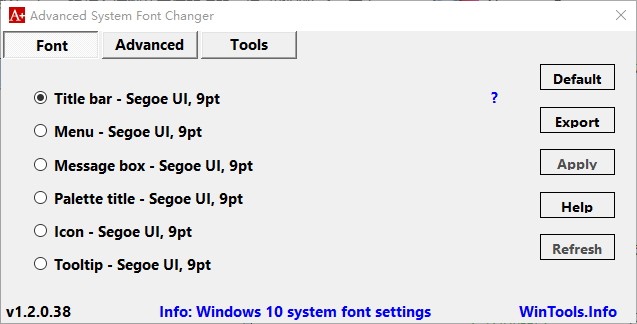 Advanced System Font Changer是一款系统字体更改软件,主要的作用是为用户提供额外的字体设置选项,让用户可以更加灵活的使用系统默认字体;用户可以按照字体的类别来设置字体的大小样式以及其它一些常用的参数;同时用户还可以通过这款软件来调节桌面图标的样式,比如您可以调节图标的间距,菜单的亮度,标题的高度等等;Advanced System Font Changer简单的设置选项让用户能够轻松地修改默认字体,让系统的默认字体可以按照用户的喜好显示出来。