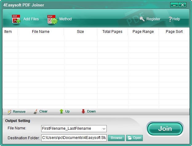 4Easysoft PDF Joiner是一款体积轻量、简单易用的pdf文件合并工具,可以帮助用户将多个PDF文件合并成一个新的PDF文件,方便用户后续对PDF文件的编辑和使用,使用这款软件用户只需导入需要合并的PDF文件即可进行PDF文件合并;4Easysoft PDF Joiner界面简洁直观、操作简单方便,可以帮助用户将多个PDF文件组合成一个完美无缝的全新PDF文件,让用户可以更方便地组织、存档和打印PDF文件,该软件支持合并、打印页面范围和页面排序自定义设置,是一款非常简单便捷的PDF文件合并软件,欢迎大家下载使用。