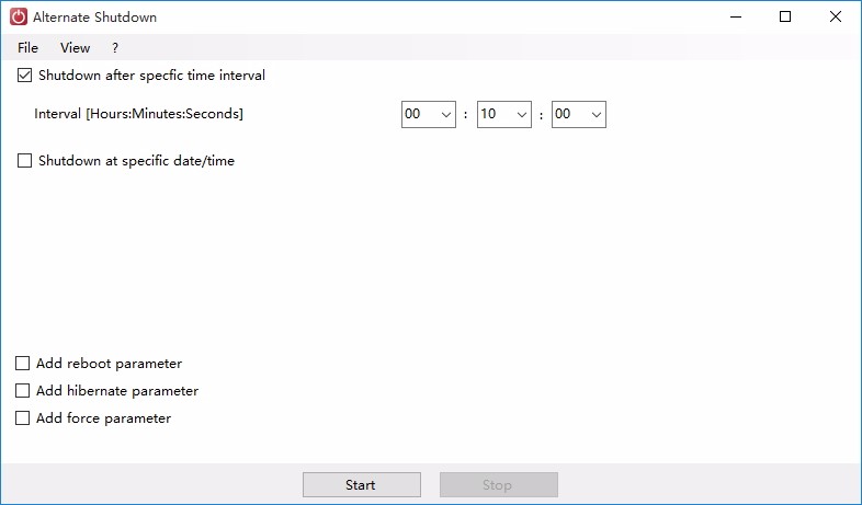 基本上,使用这个应用程序主要意味着选择两种关机方法中的一种,在整个方程中添加一个重启、一个休眠和一个所谓的“强制”参数,所有这些都可以通过单击指定的复选框来实现。
