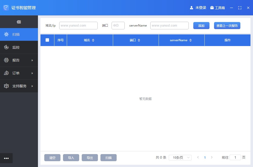 智能分析报告状态,支持双证书信息,多证书链,协议和加密套件信息,客户端握手模拟和云公网输出权威扫描报告的全面显示。