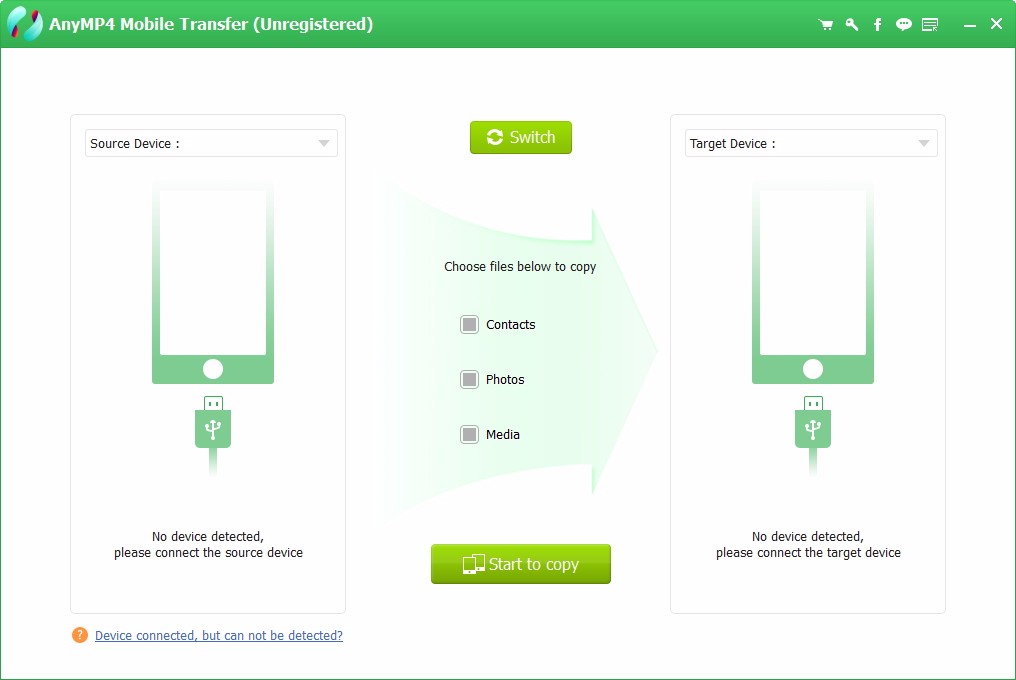 AnyMP4 Mobile Transfer是功能强大的手机传输软件,可以将几乎所有东西从一部手机传输到另一部手机。您可以轻松地将联系人从旧手机转移到新手机以进行联系备份。此外,这款手机复印机还支持传输从网站下载的所有照片和图片,或者将相机从iPhone手机传输到Android手机或iPhone手机之间。对于媒体文件,包括音乐,视频,铃声等。你仍然可以通过一次简单的点击来迁移它们。