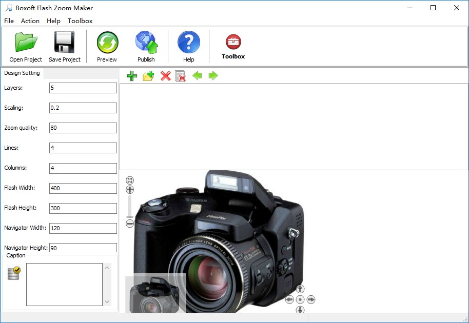 Boxoft Flash Zoom Maker是一款体积轻量、简单便捷的flash图片浏览软件,也是一款快速高效的Flash动态图像创建软件,该软件可以帮助用户快速打开flash图片文件进行查看,同时可以将其他的图片格式添加到软件上进行flash动态图像进行生成;Boxoft Flash Zoom Maker这款flash图像缩放查看和制作软件能够帮助用户放大缩小各种网站上的高分辨率图像,为用户提供了令人难以置信的细节,可增强用户对产品质量的信心,同时用户可以将该软件将制作的动态图像嵌入到用户的网站上,非常方便实用。