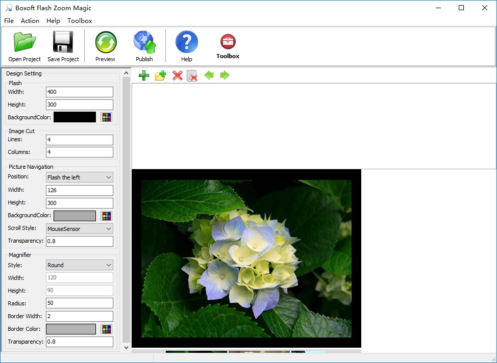 使用Boxoft Flash Zoom Magic,您可以轻松创建令人惊叹的闪光灯放大镜图像,非常适合在互联网上销售产品。